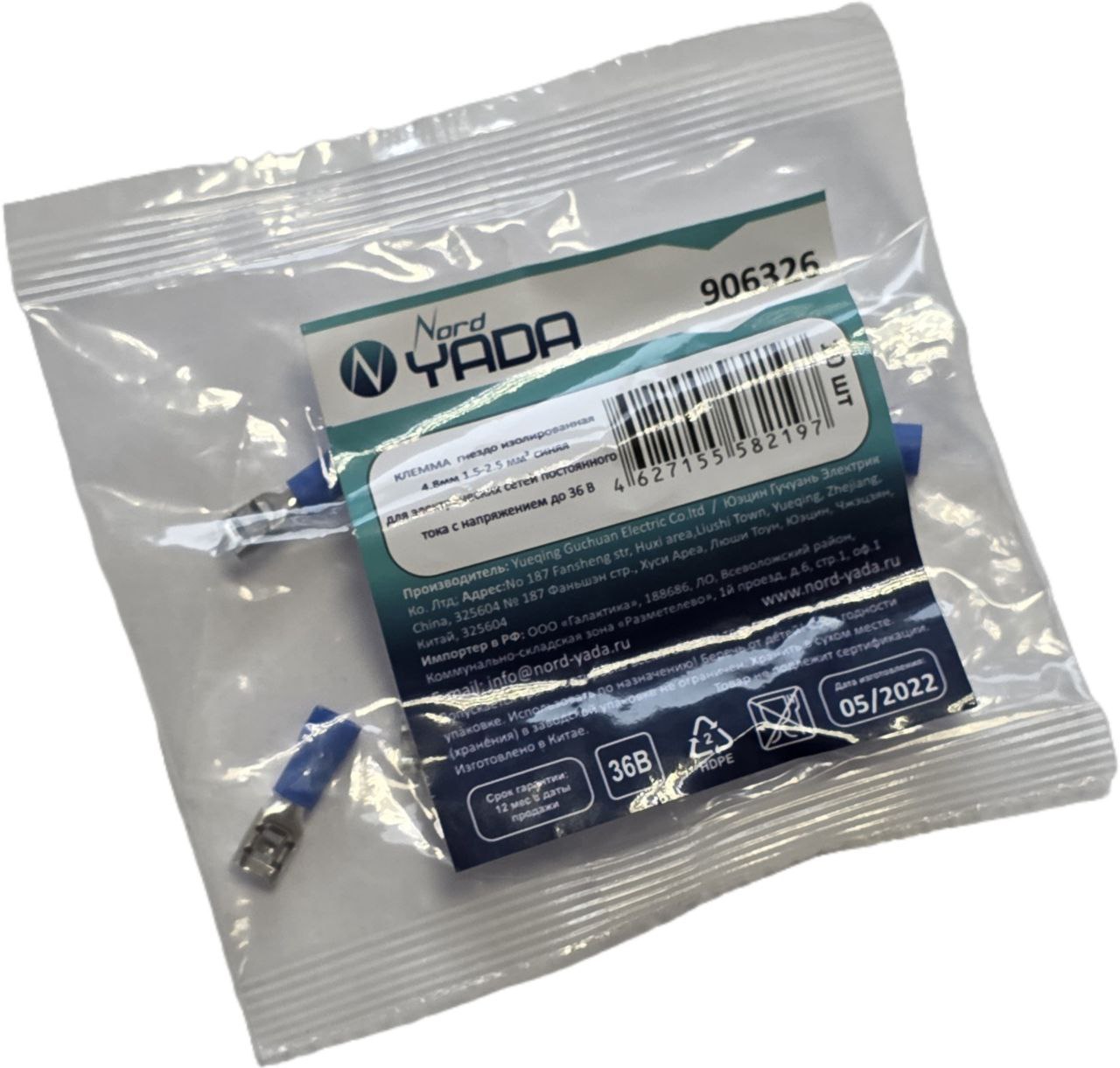 КЛЕММА мама изолированная 4.8мм 1.5-2.5 мм синяя для электрических сетей постоянного тока с напряжением до 36В Минимальная отгрузка - упаковка/10 шт