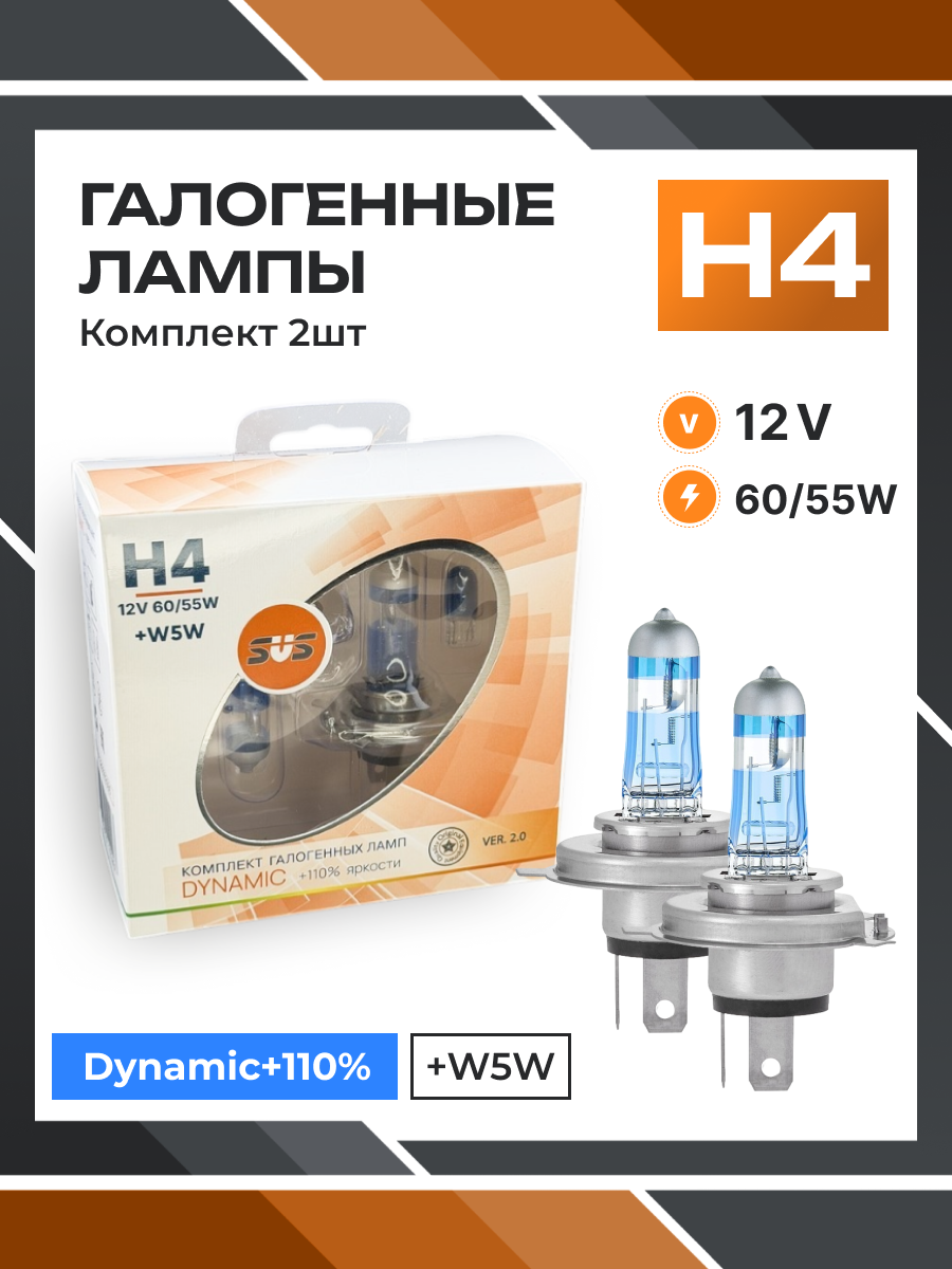 Галогенные лампы серия Dynamic+110% 12V H4 60/55W+W5W, комплект 2шт. Ver.2.0