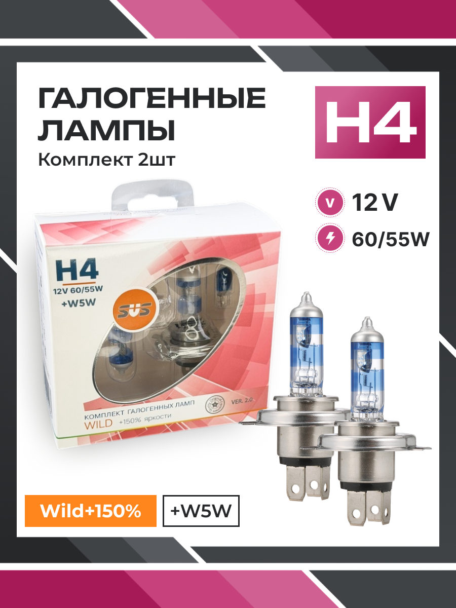 Галогенные лампы серия Wild+150% 12V H4 60/55W+W5W, комплект 2шт. Ver.2.0