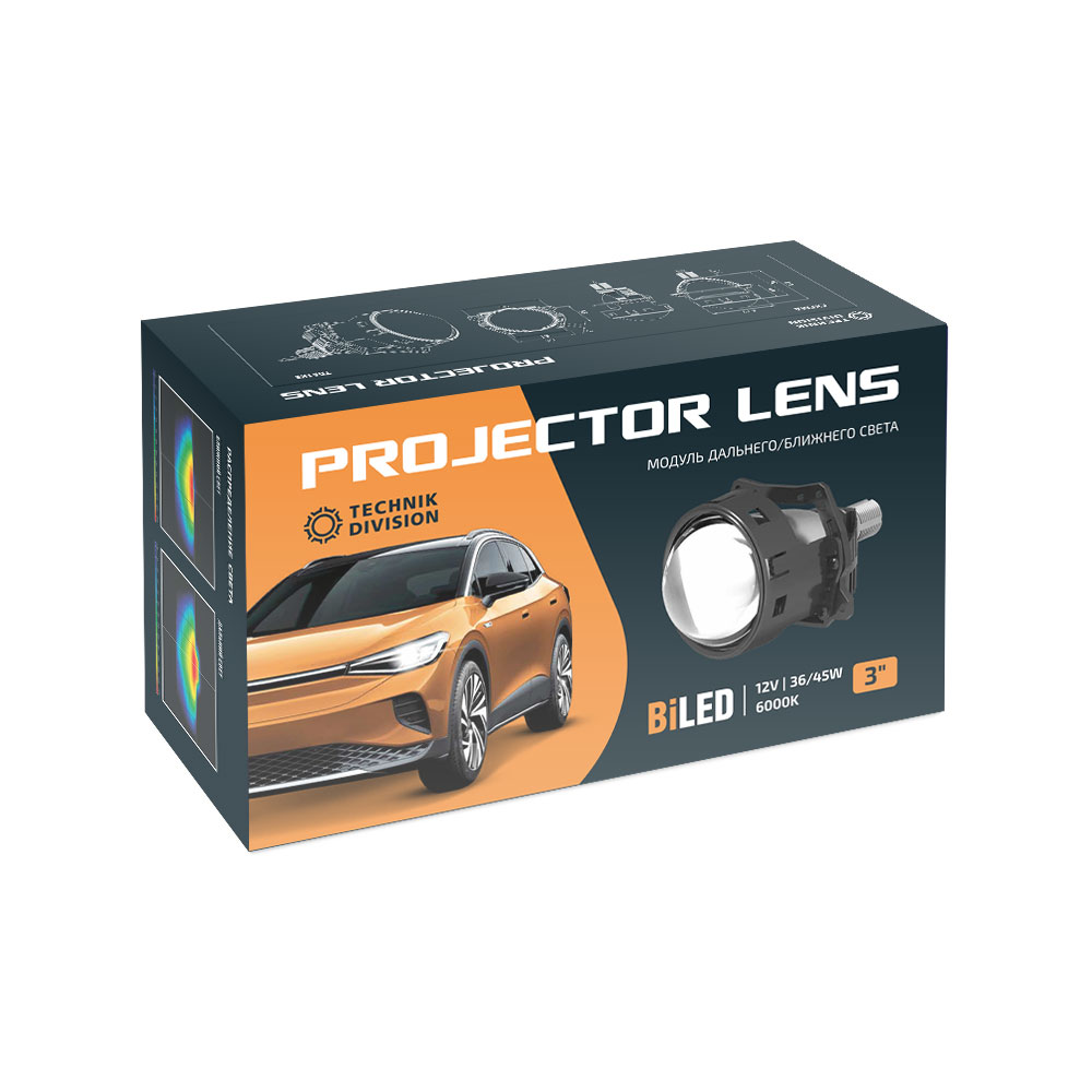 Светодиодные BiLED модули TECHNIK DIVISION, линзованные, бескорпусные, 12В, 45Вт, 6000К, 3 дюйма, комплект. Арт.: TD01K5